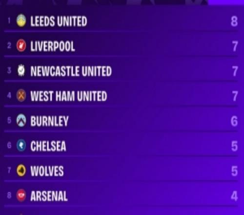 本賽季英超90分鐘丟球榜:利茲聯(lián)8球最多,利物浦7球并列次席
