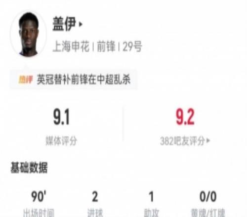 蓋伊中超首秀數(shù)據(jù):5次射門攻入2球,4次嘗試過人2次成功