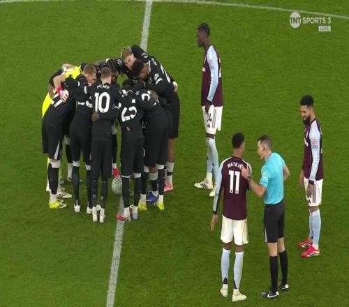 致敬西虹市首富切爾西眾人開球前將球圍在中間,解說員啞然失笑