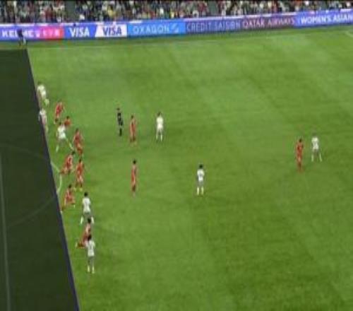 劃線瞬間!畫面顯示,朝鮮女足防守球員腿部拖在最后