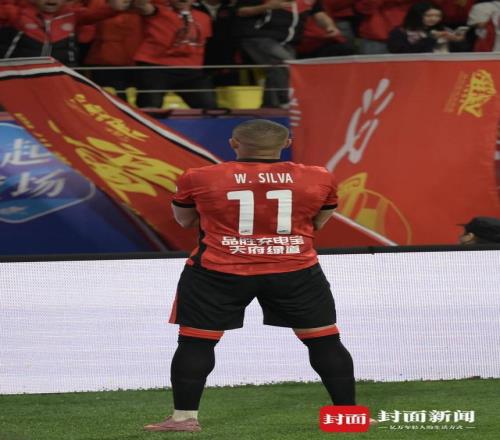 多打一人,場(chǎng)上的局勢(shì)瞬間發(fā)生逆轉(zhuǎn),成都蓉城逐漸掌握了場(chǎng)上主動(dòng)。第20分鐘,蓉城前場(chǎng)打出精彩配合,費(fèi)利佩禁區(qū)內(nèi)接球后回做給席爾瓦,席爾瓦凌空推射進(jìn)球,將比分扳成1-1!這是席爾瓦加盟蓉城后的首粒進(jìn)球,進(jìn)球后的他也特別興奮,面向球迷看臺(tái)怒吼慶祝。球迷們也齊聲喊道“姆巴佩”,對(duì)這位長(zhǎng)相酷似法國(guó)球星姆巴佩的球員表達(dá)喜歡之情。值得一提的是,曾經(jīng)蓉城的“巴西連線”僅僅只有羅慕洛和費(fèi)利佩,席爾瓦的加盟讓巴西連線增加了更多的攻擊點(diǎn),可以預(yù)見,這將是本賽季蓉城重要的攻擊線之一。
