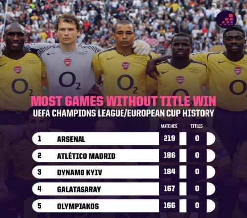 目前,阿森納在英超積分榜上處于絕佳位置,他們有望自2004年以來首次捧起英超冠軍獎(jiǎng)杯。而在本周中,槍手的注意力將再次轉(zhuǎn)向歐冠賽場(chǎng)。無論是在現(xiàn)行賽制下,還是在歐洲冠軍杯時(shí)代,槍手從未染指過歐冠冠軍獎(jiǎng)杯。